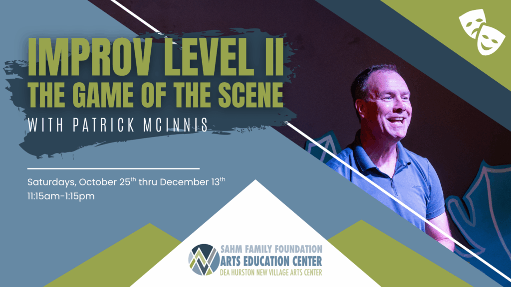 Through teaching and performance, Patrick McInnis has shared his love of improv with students and audiences across the US. His team The Third Thought has performed regularly in national festivals, and he has built vibrant improv communities in Boulder, Colorado, Tampa/St. Petersburg and now here in Carlsbad. Learners from elementary schools through assisted living facilities have played and learned with Patrick. His teaching engagements include American Stage Theatre, Florida Studio Theatre, and the University of Southern California. His corporate training clients include organizations from small to large, including iRobot and Johnson & Johnson. He is delighted to have the opportunity to bring improv to New Village Arts.