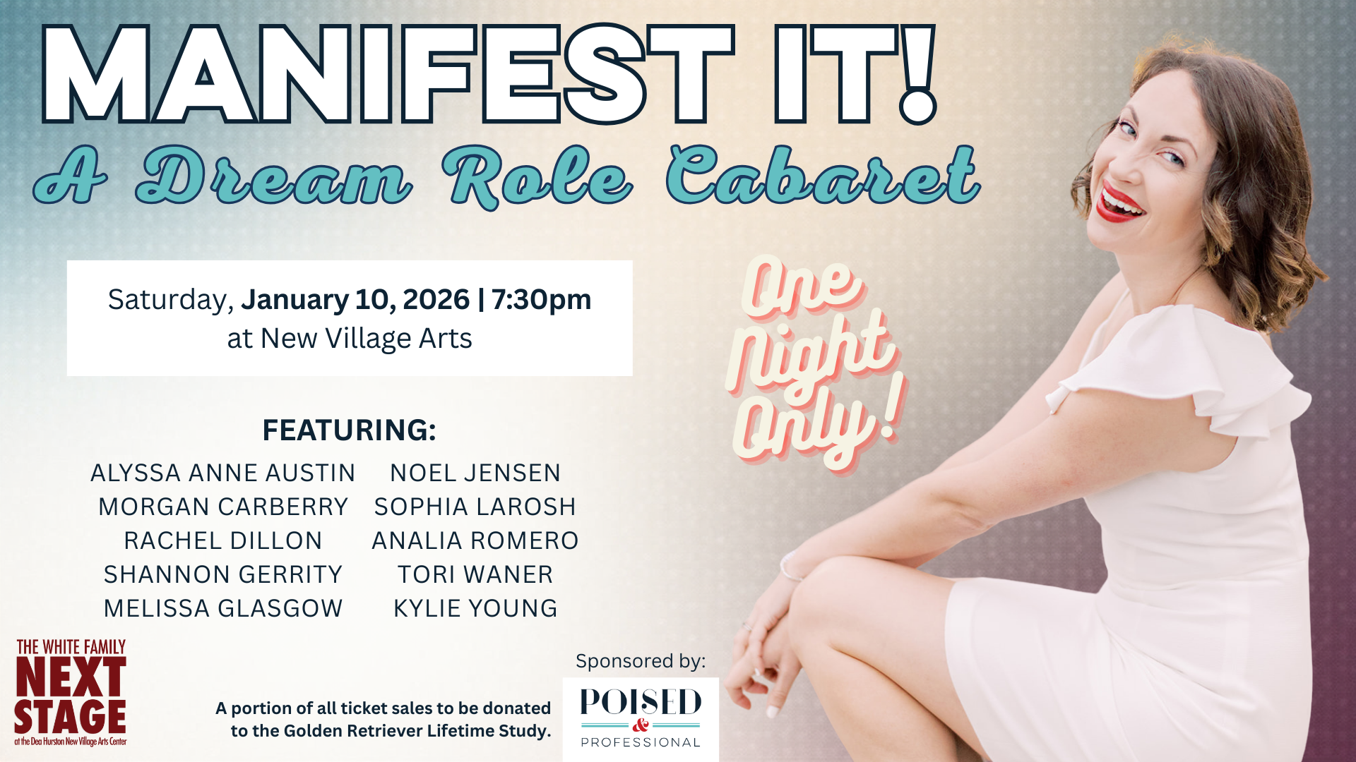 “Manifest It!” is produced by Poised & Professional. A portion of all ticket sales will be donated to the Golden Retriever Lifetime Cancer Study.