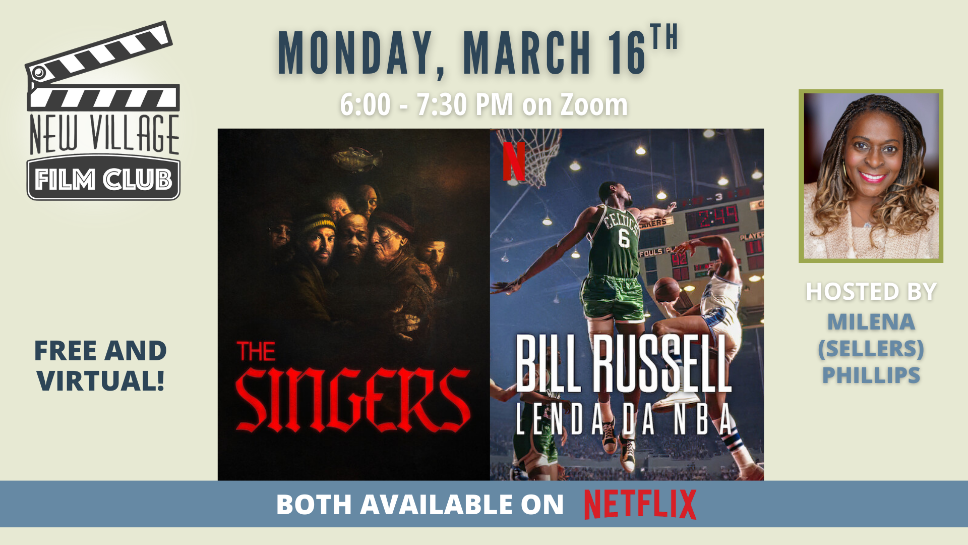 Join us virtually on Monday, March 16th for a discussion on THE SINGERS (2026) & BILL RUSSELL LEGEND (2023); both available on Netflix!